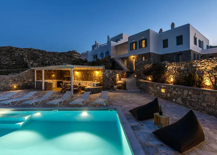 Dojazd na lotnisko Mykonos zajmuje 10 min, a atrakcje przyrodnicze, takie jak Plaża w Ajos Stefanos, są w prawie 3 km. W prawie 4 km stąd leży Muzeum Morza Egejskiego.